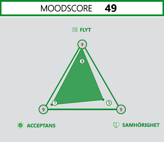 The Moodscore and its underlying factors are graphically presented. in a manner that expresses the emotional profile of a creative solution.. (This in Swedish though.)